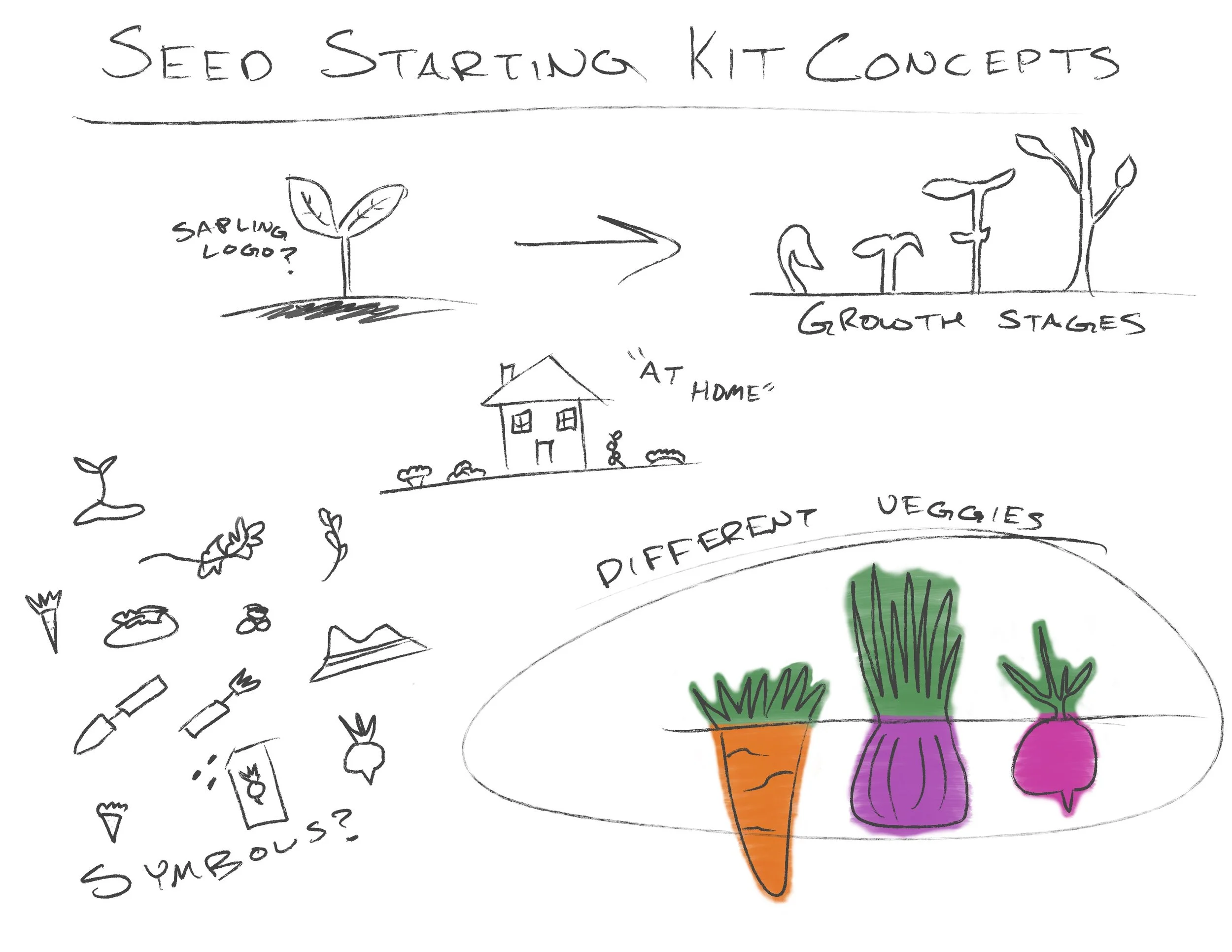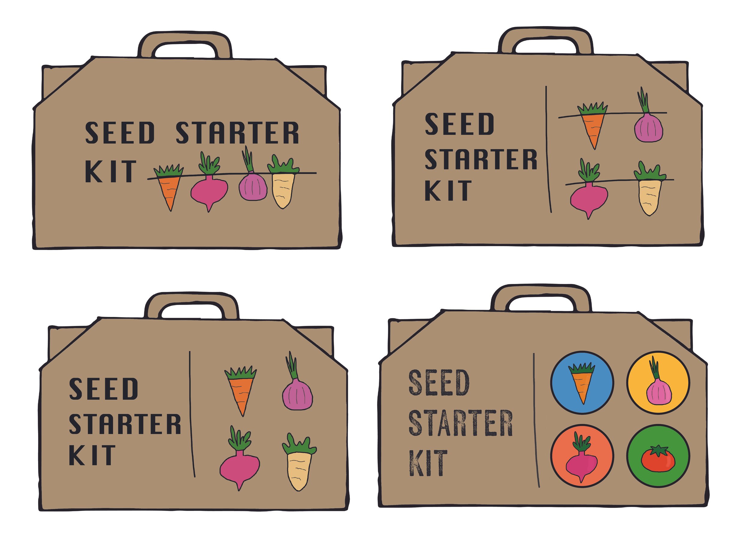 Initial ideation focused on finding a design theme and style. Explores different ways to communicate the use and purpose of this kit. Figuring out what elements to choose before focusing on overall design, packaging form, or colors.